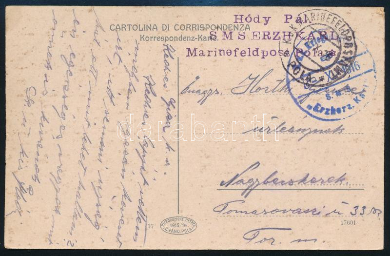1916 Tábori posta képeslap / Field postcard "S.M.S. Erzherz. Karl"