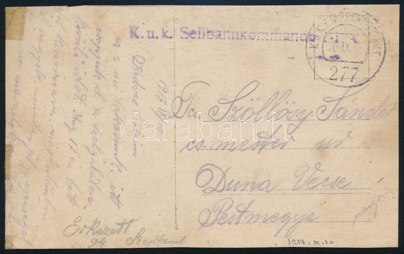 1917 Tábori posta képeslap / Field postcard "K.u.k. Seilbahnkommando" + "EP 277"