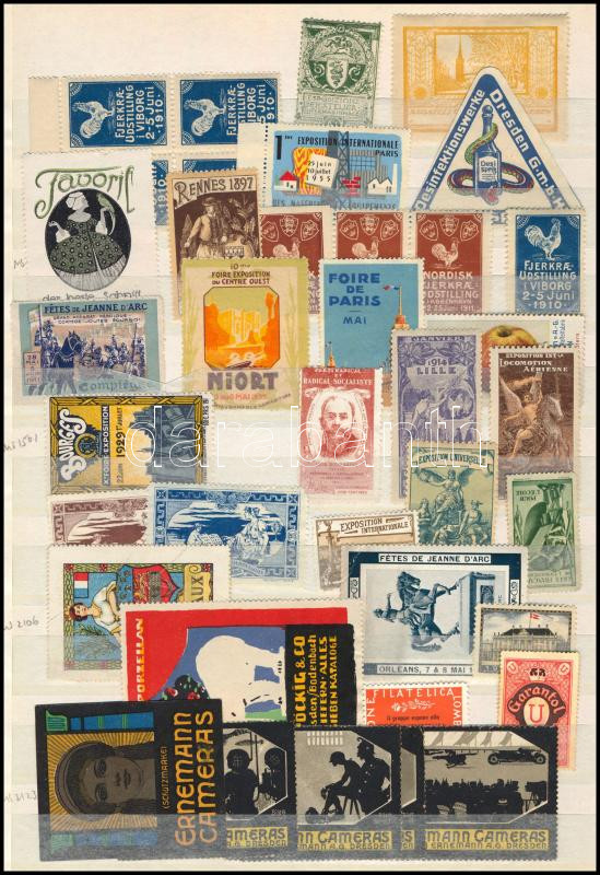 Régi, vegyes alkalmi és kiállítási levélzáró tétel kétoldalas berakólapon / Collection of old exhibition expo and other poster stamps on two pages
