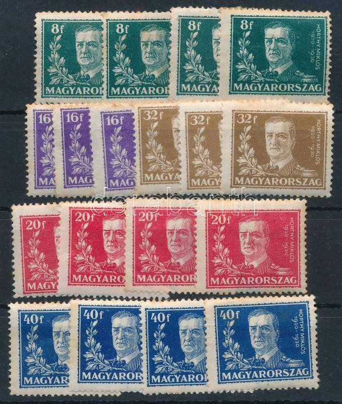 1930 Kormányzói 10 éves évforduló 3 db sor + másodpéldányok (rozsda / stain)