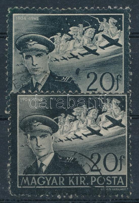 1942 Kormányzóhelyettesi gyászbélyeg a váll felett nagy fekete folt lemezhibával + támpéldány