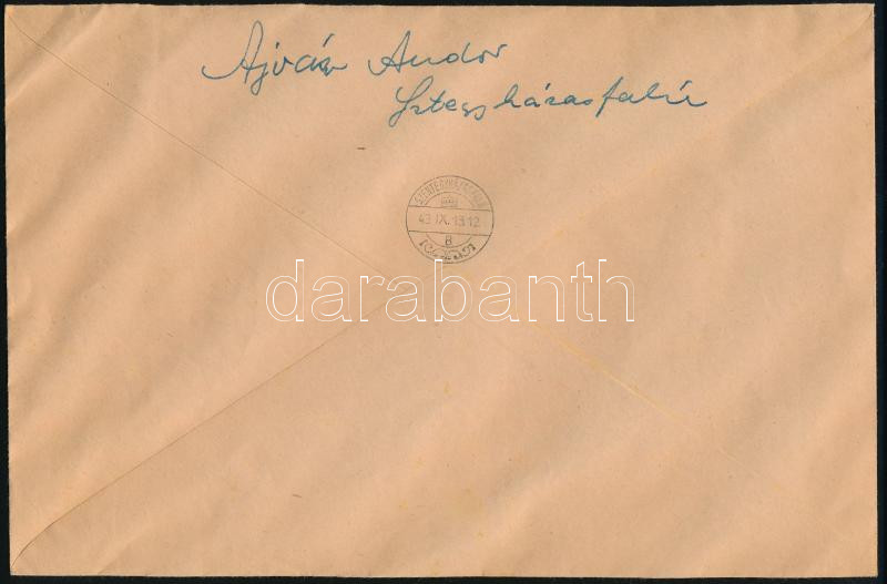 1943 Ajánlott levél teljes Hadigondozás sorral / Mi 722-730 on registered cover