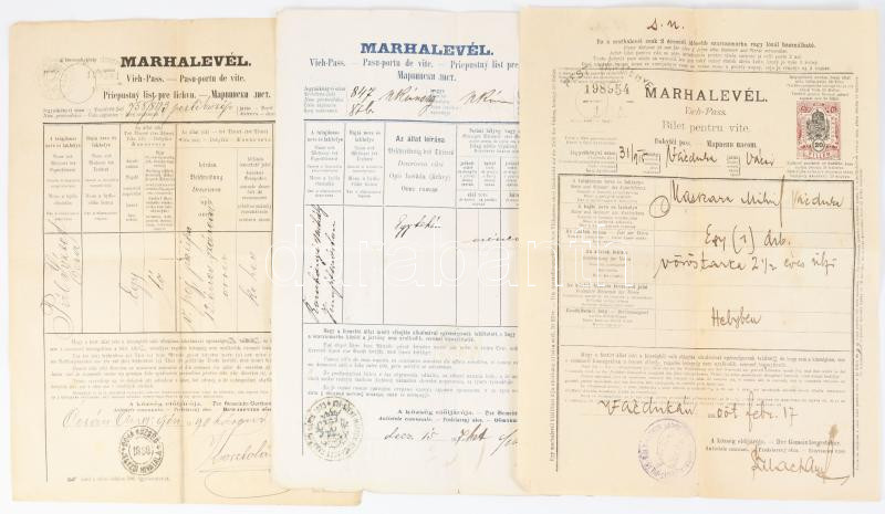 1893-1915 3 db marhalevél díjjegyekkel
