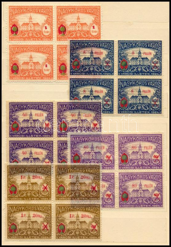 1924 Nagykőrös városi okmánybélyegek, felülnyomással is, 20 db