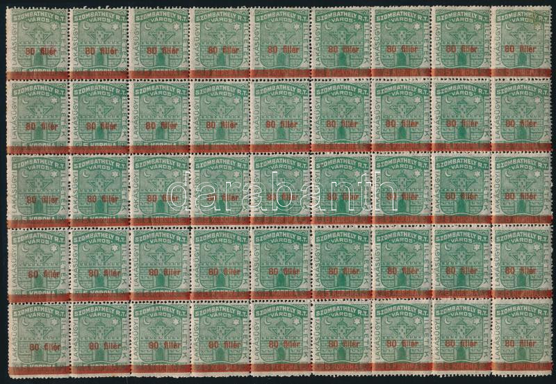 1928 Szombathely 80f/5K városi okmánybélyeg 45 darabos ívrészlet (112.500)
