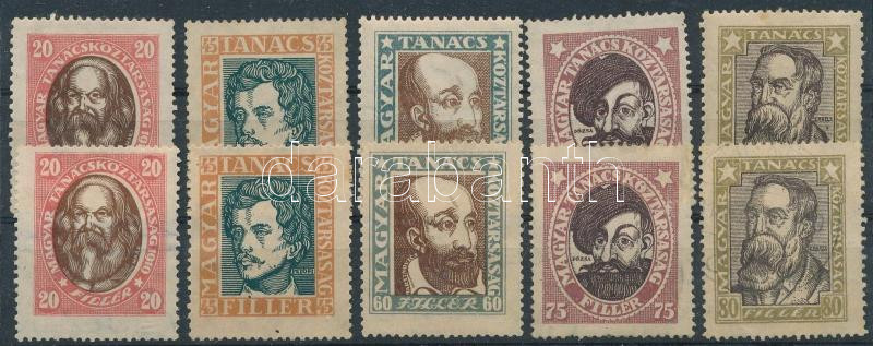 1919 Magyar Tanácsköztársasági arcképek 2 sor, közte A és B vízjelű értékek is