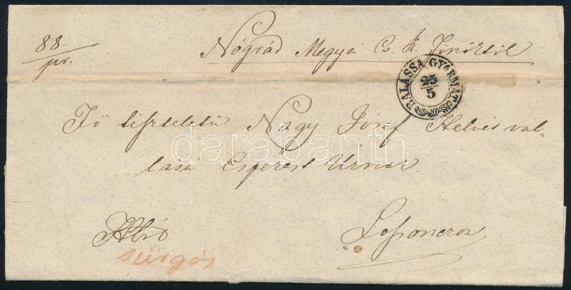1836 Hivatalos levél "sürgős" felirattal "BALÁSSA GYARMAT" - "LOSSONCZ"