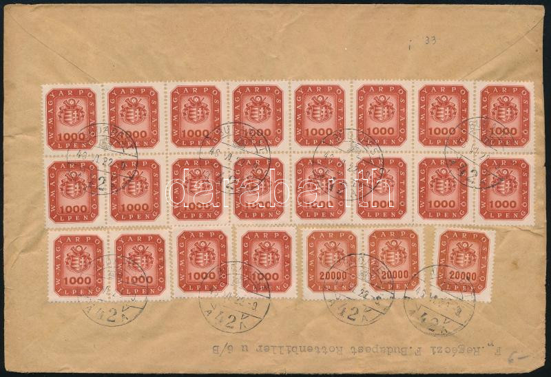 1946 (20. díjszabás) Levél Csehszlovákiába 23 db bélyeggel