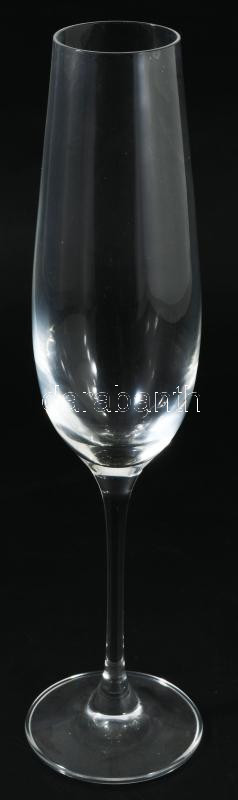 16 személyes nagyméretű talpas kristály pezsgős pohár garnitúra, hibátlan, m: 25,5 cm