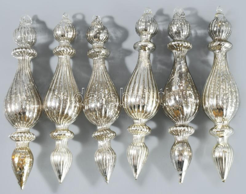 6 darab foncsorozott üveg karácsonyfadísz, hibátlan, h: 19 cm