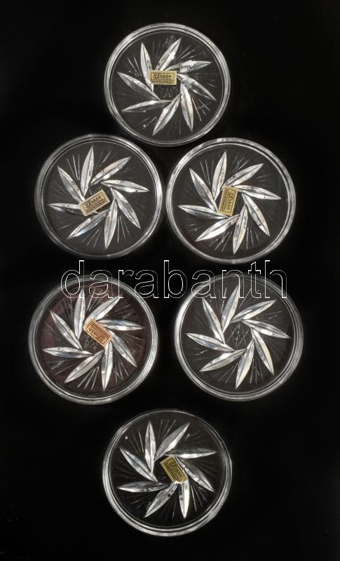 6 db parádi kristály poháralátét, hibátlan, jelzett d: 9 cm
