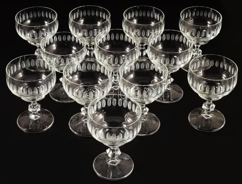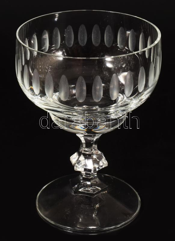 Antik 12 személyes ólomkristály talpas likőrös pohár garnitúra, hibátlan, m: 9 cm