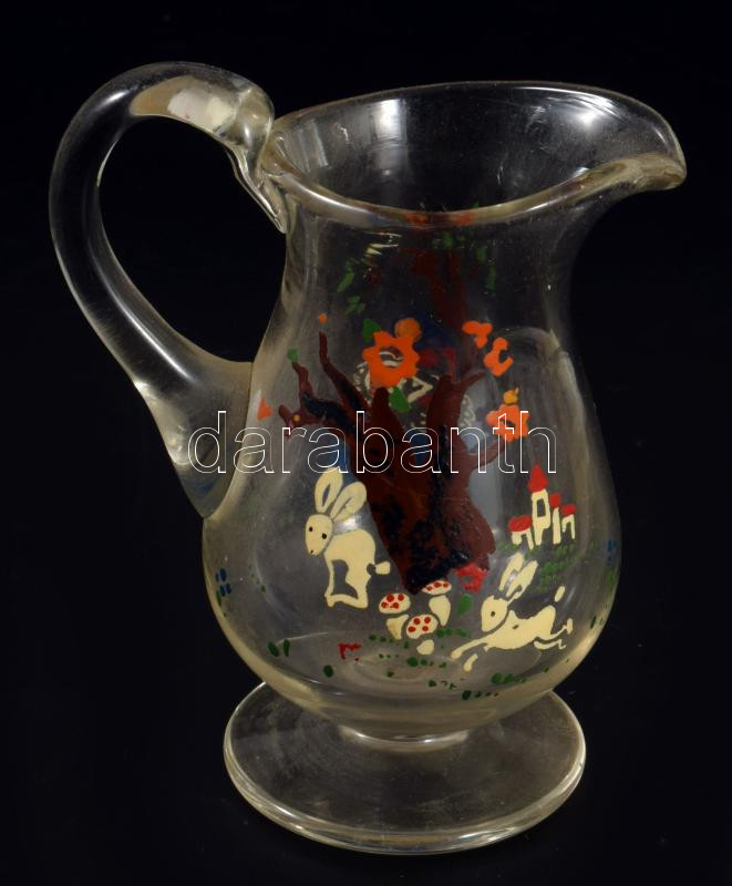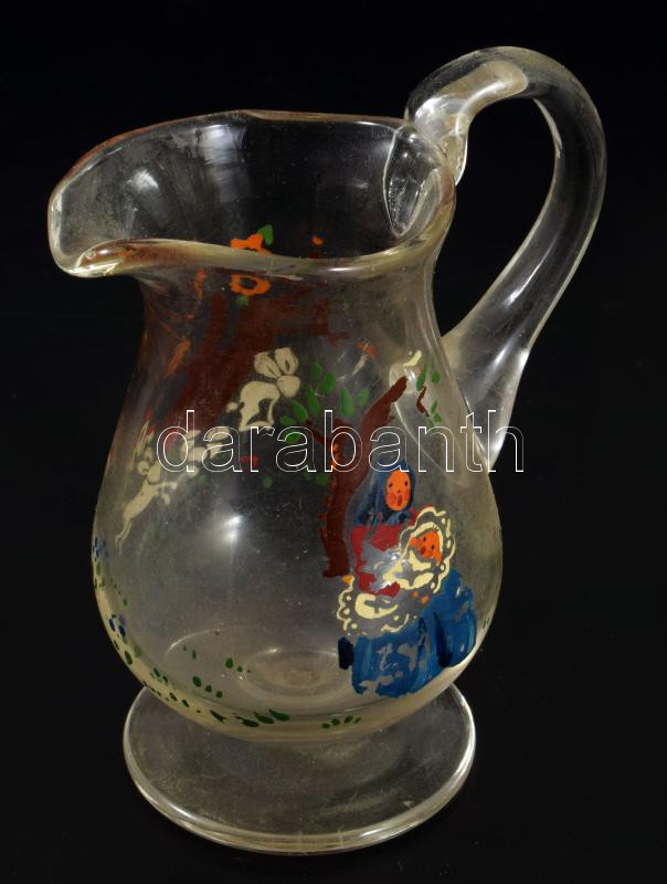 Antik gyermekjáték üveg kiöntő, kopott festéssel, m: 10 cm