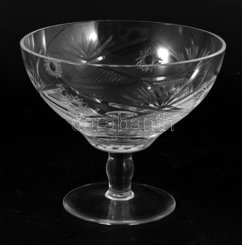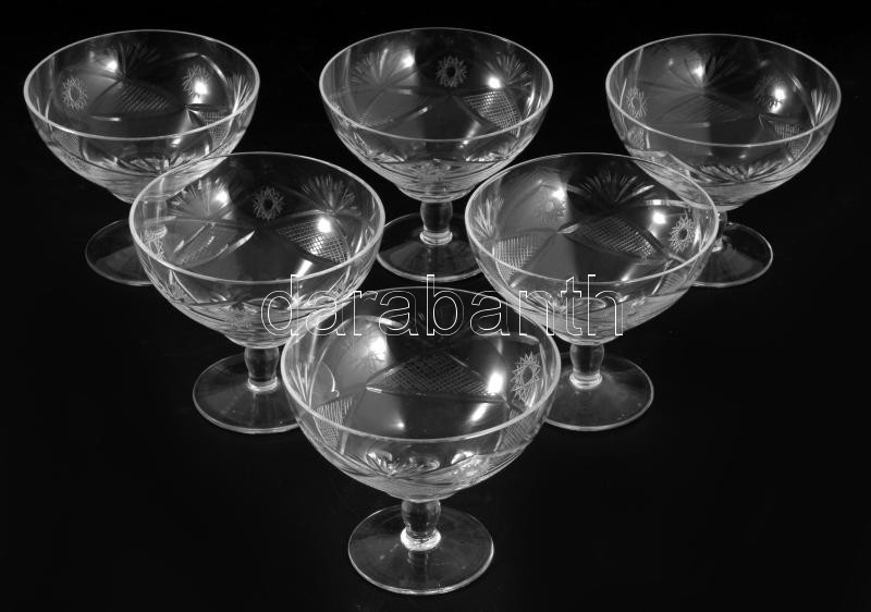 Antik kristály pezsgős pohár garnitúra, 6 darab, hibátlan, m: 9 cm