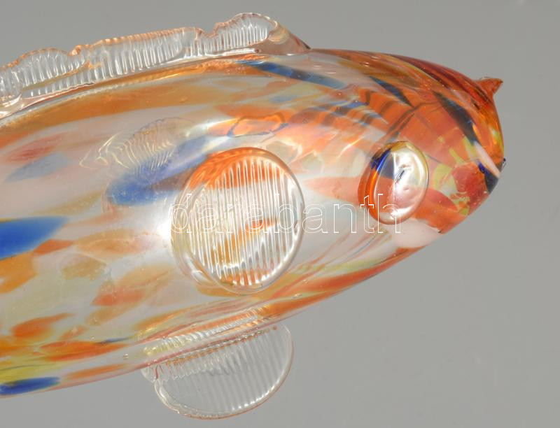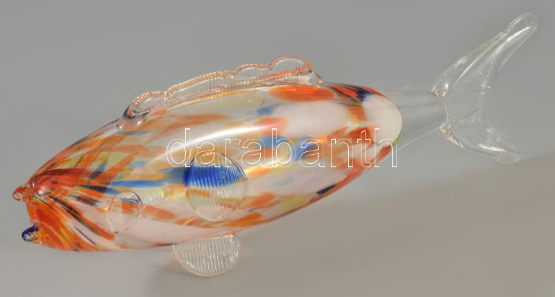 Anyagában színezett üveghal, hibátlan, h: 26 cm