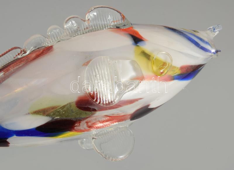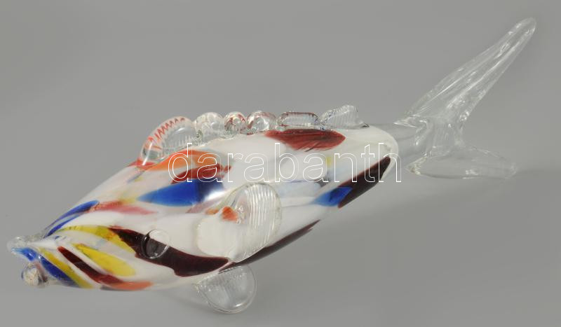 Anyagában színezett üveghal, hibátlan, h: 28 cm