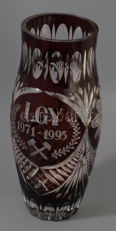 Bíborpácolt kristály váza. LGY 1971-1995 felirattal, hibátlan 31 cm