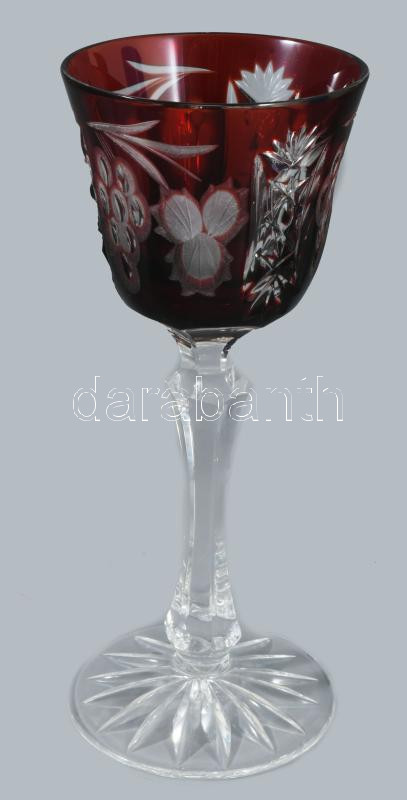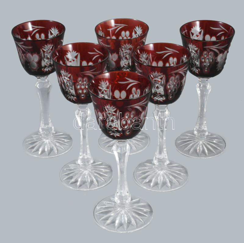 Bordó kristály likőrös pohár készlet, hibátlan 16 cm