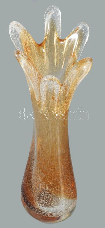 Cseh buborékos üveg váza váza, anyagában színezett, hibátlan 34 cm