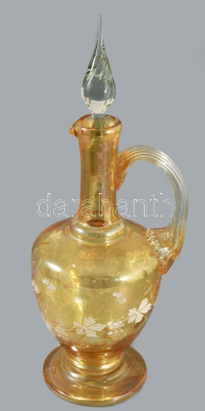 Cseh díszüveg kancsó. nem hozzávaló üveg dugóval. Szakított többrétegű hutaüveg 39 cm