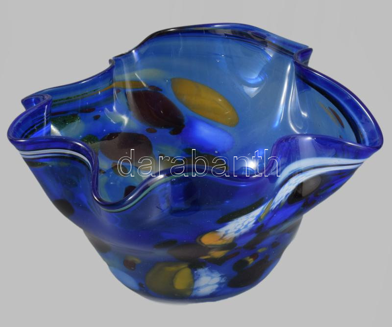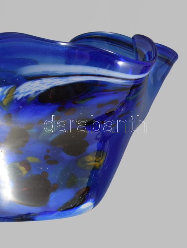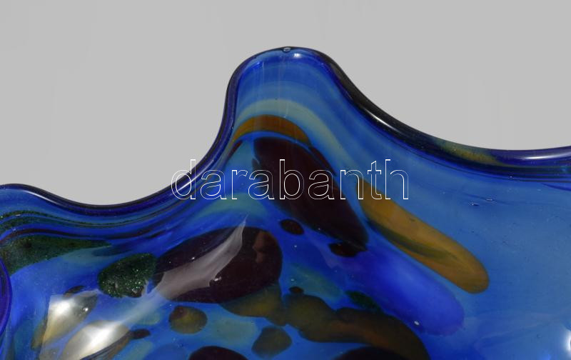 Murano anyagában színezett hutaüveg fodros asztaldísz, hibátlan, d: 20 cm, m: 12 cm