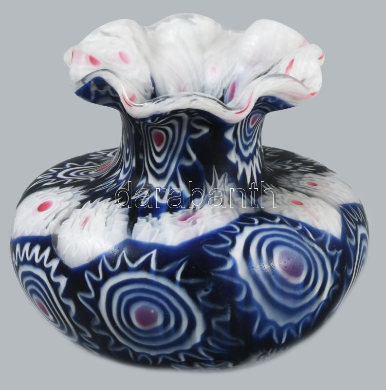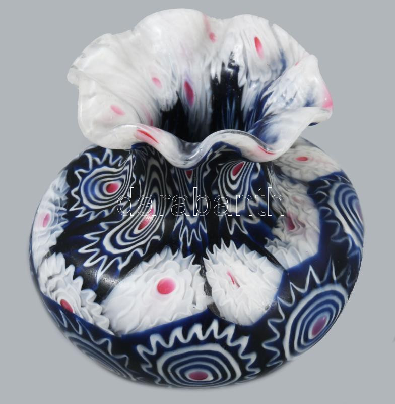 Muranói üveg váza, millefiori. hibátlan m: 5 cm