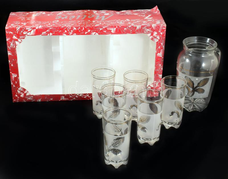 Olasz Moliére boros szett, kancsó és 6 pohár, dobozában,