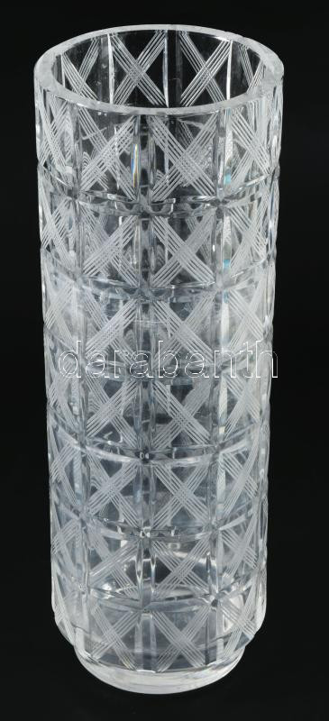 Ólomkristály hengerváza, gazdag mintával, kis pattogzással, m: 30 cm