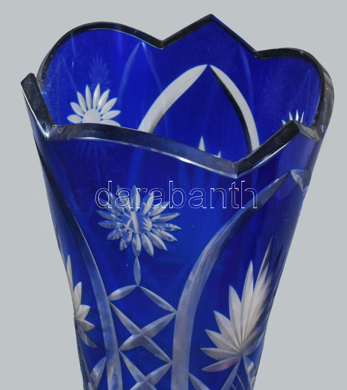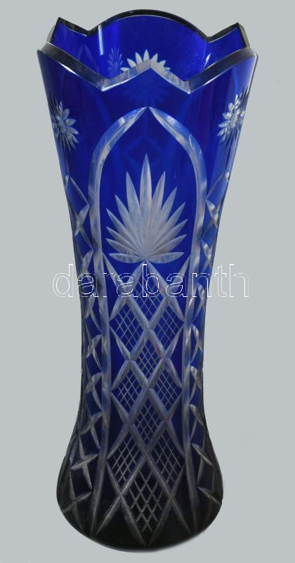 Ólomkristály váza, kéken pácolt,hibátlan, m: 33 cm