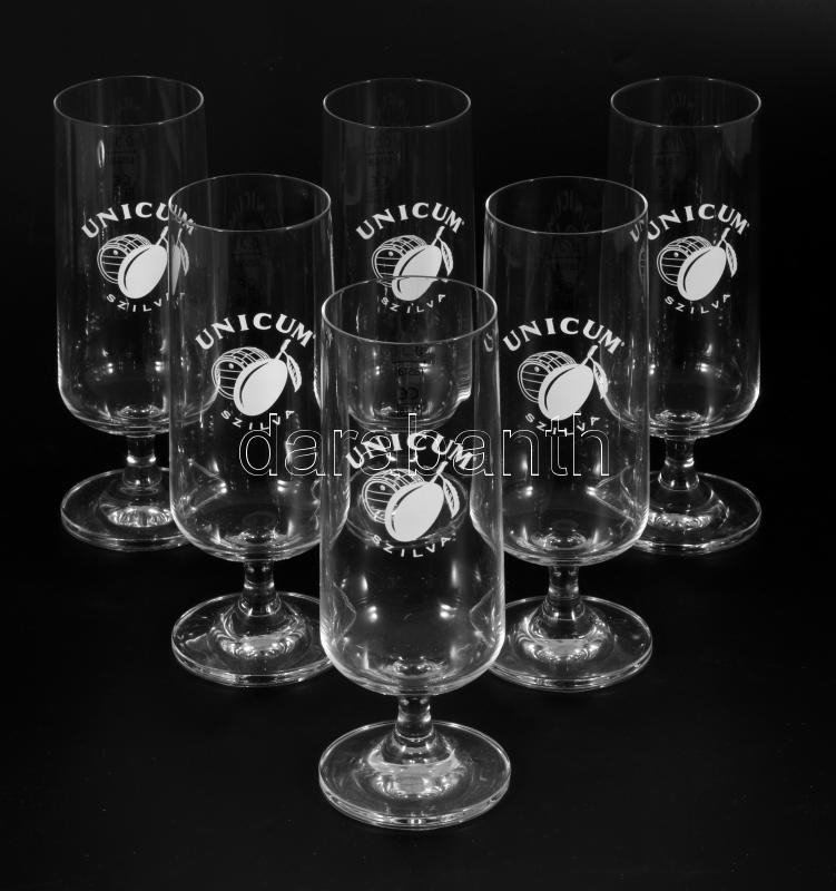 'Unicum Szilva' long drink üveg pohárkészlet, eredeti dobozában, 6 db, 0,3 l, m: 18 cm