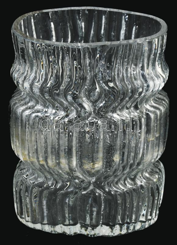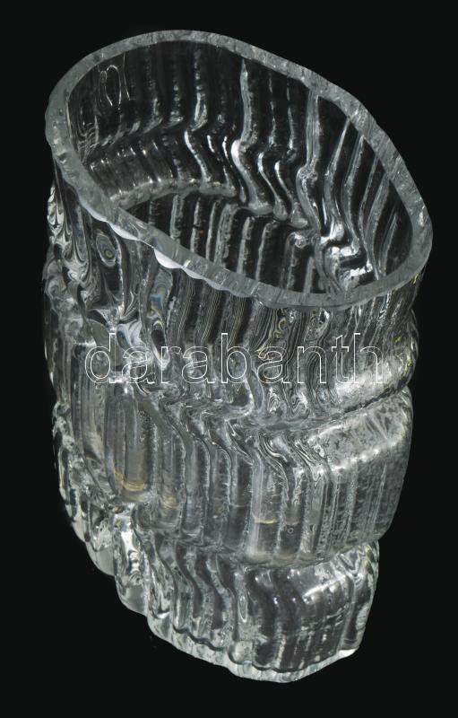 Vladislav Urban brutalista váza. Kristály, formába öntött, csiszolt, hibátlan 23 cm