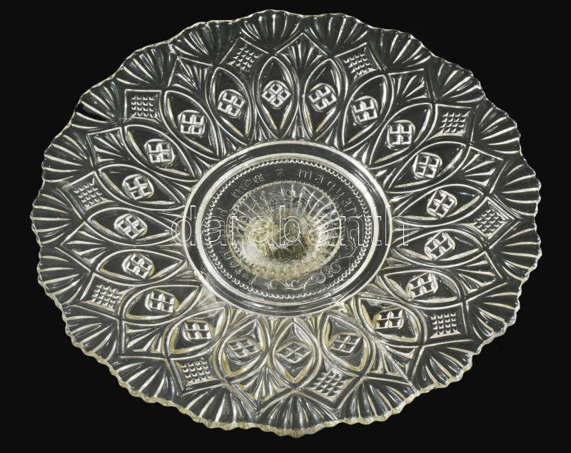ca 1920 Isten áldd meg a magyart feliratos, magyar címeres süteménykínáló. d: 28 cm Hibátlan