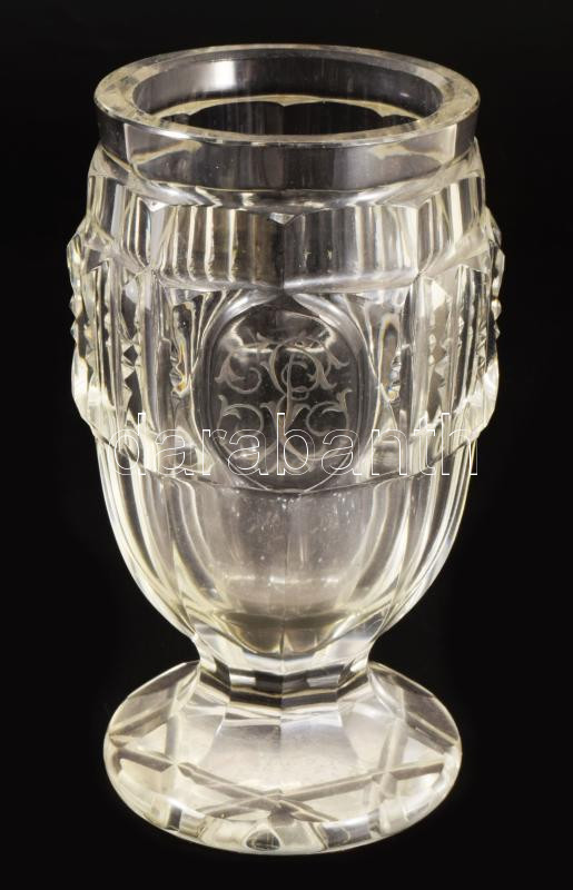 cca 1880 Monogramos emlékpohár, m: 12 cm