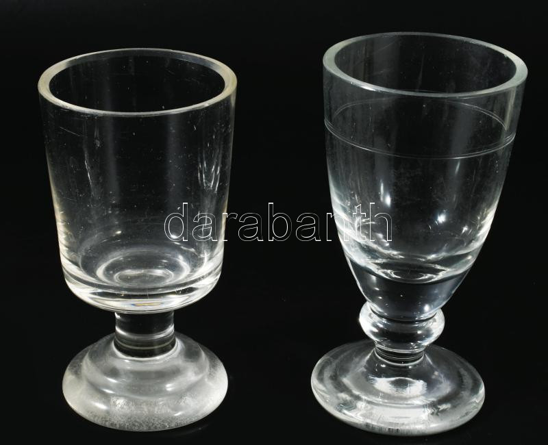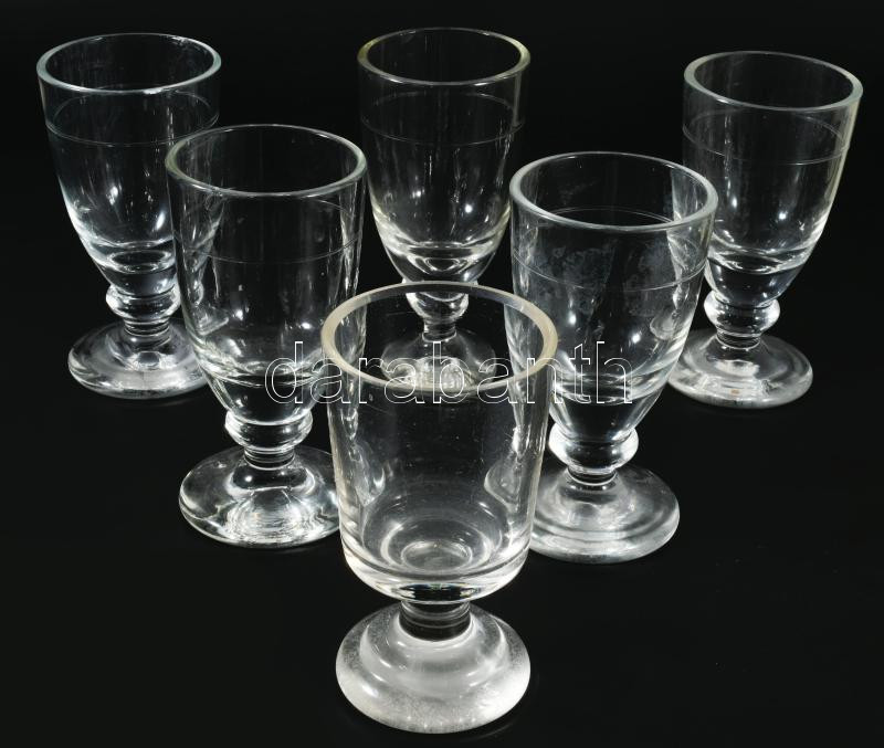 cca 19. sz. második fele, Antik 6 részes talpas pohár szett, egyik eltérő, m: 13 cm