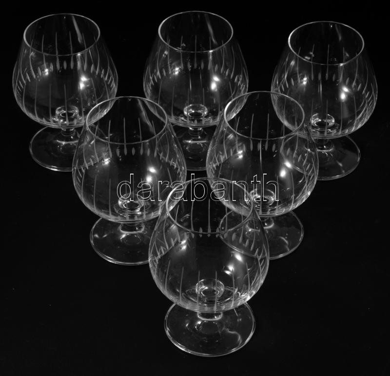 cca 1930/50 Kristály talpas likőrös pohár szett, 6 darab, hibátlan, m: 10 cm