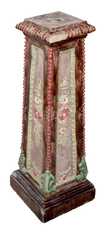 1898 Jebaczek jelzéssel szecessziós posztamens plasztikus növényi ornamentikával díszítve. Osztrák-Magyar monarchia, 1898, jelzett, tartófelülete átlyukasztva, sérülésekkel, m: 94 cm, tartófelület 19x19 cm. Nagyon nehéz! KIZÁRÓLAG SZEMÉLYES ÁTVÉTEL, NEM POSTÁZZUK / ONLY PERSONAL COLLECTION IN OUR OFFICE!