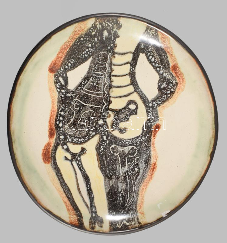 1984 Iparművész kínáló 3 lábon, jelzett, hibátlan, d: 26 cm
