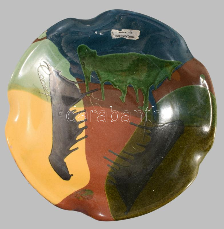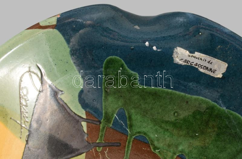 Ceramy Carcassone kerámia dísztál, kézzel festett, jelzett, hibátlan d: 30 cm