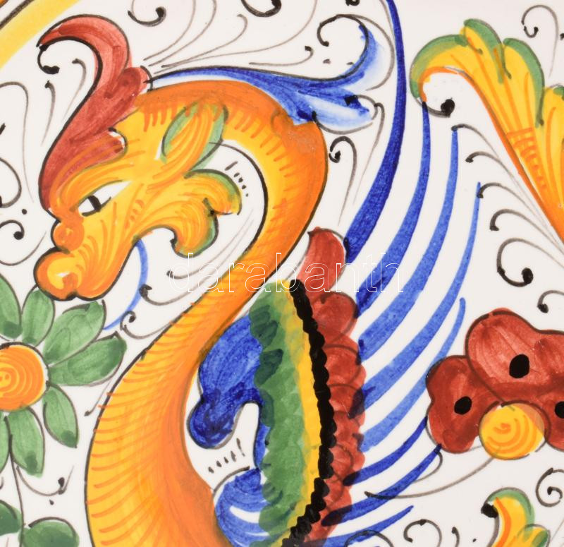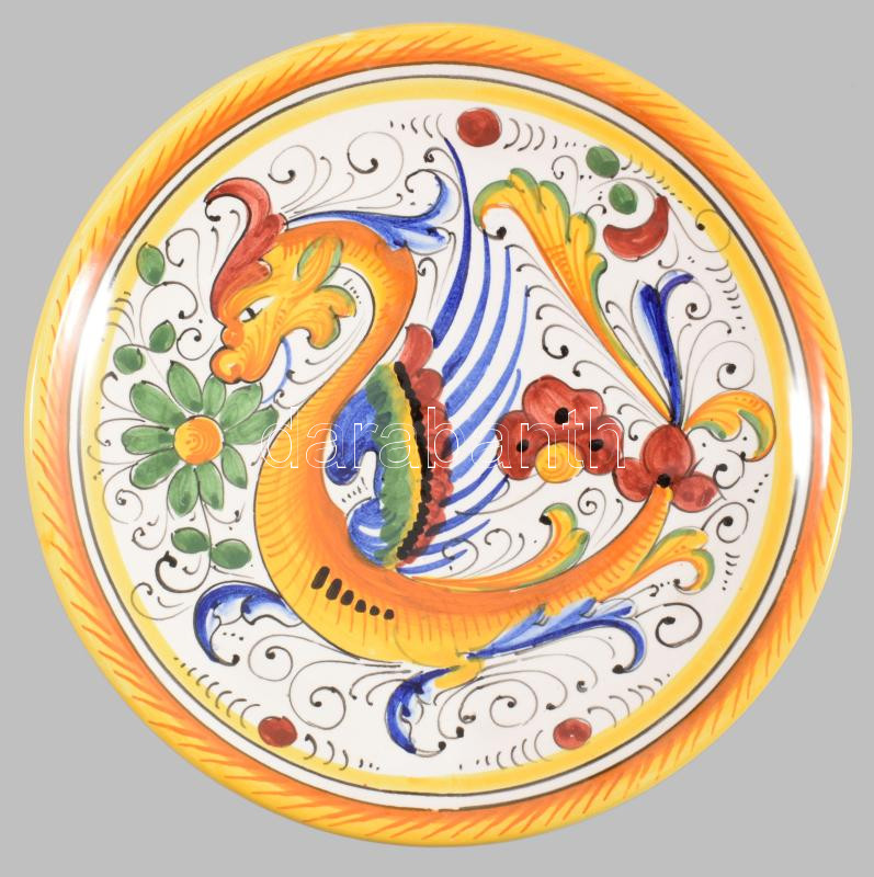 Deruta sárkánymintás dísztál, jelzett, kis mázhibával, d: 20,5 cm