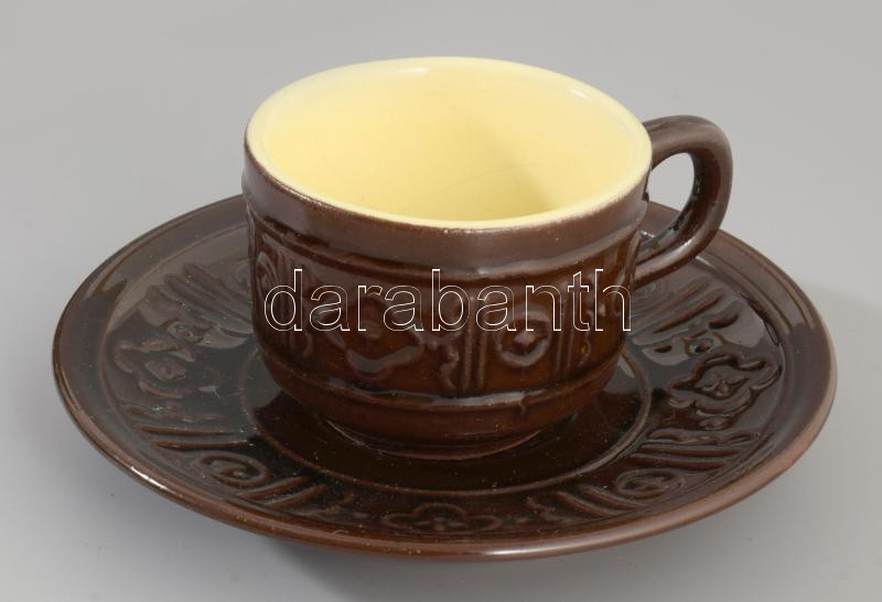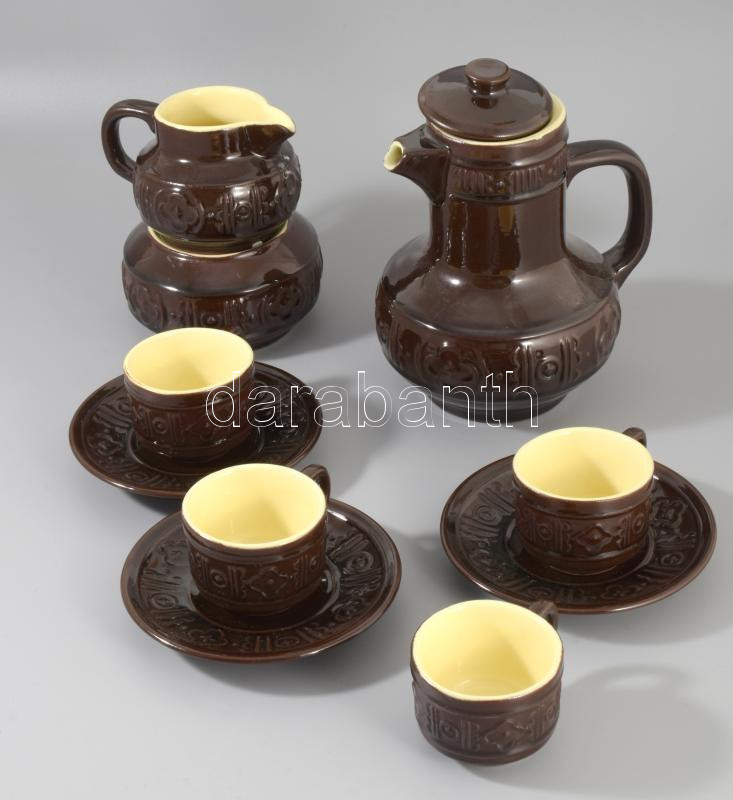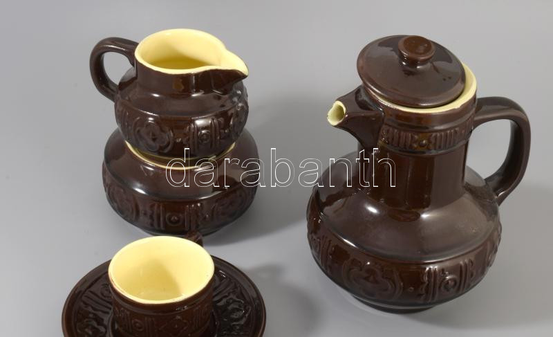 Iparművész kerámia kávés készlet. Hiányos: 4 csésze, 3 alj, kiöntő, tejkiöntő, cukordoboz.