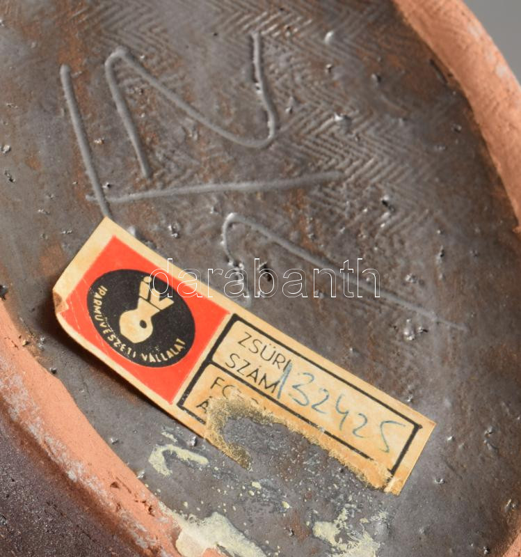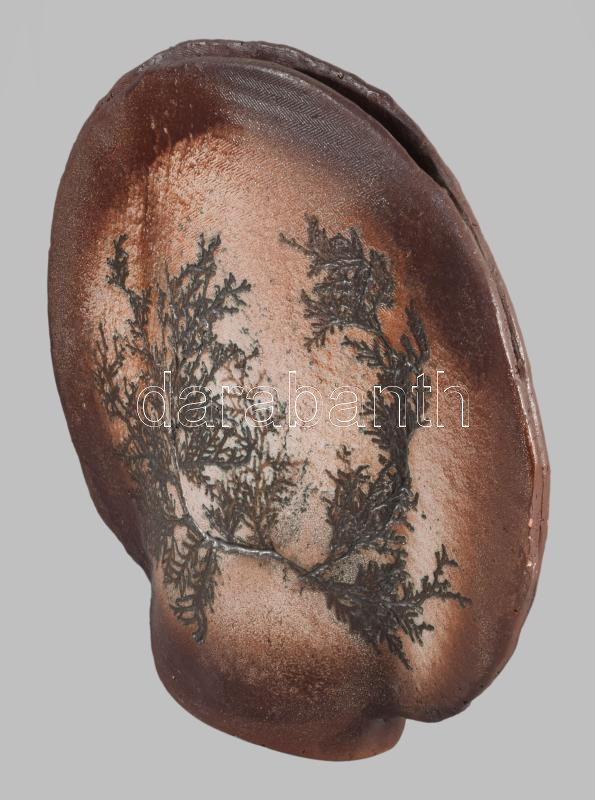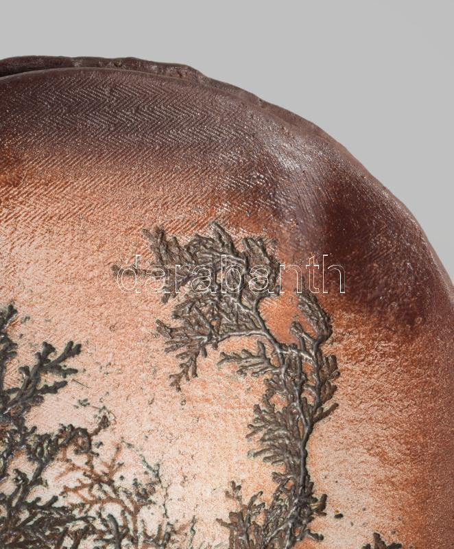 Szemereki Teréz levélmintás váza, jelzett, mázhibákkal, 30x29 cm