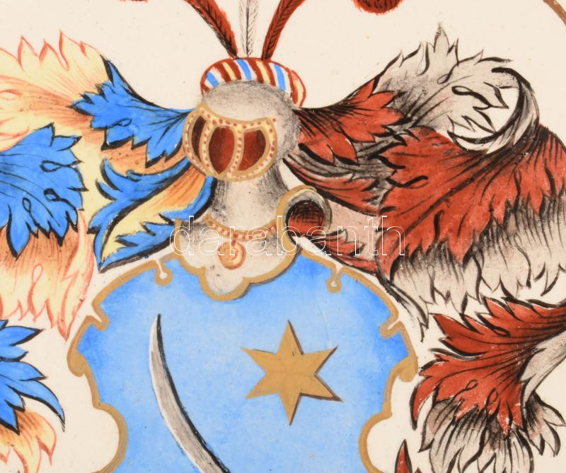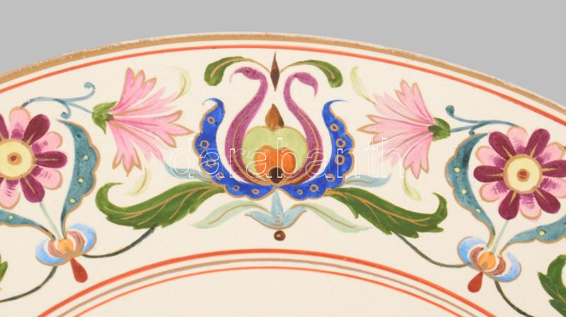 1888 Iparrajziskola dísztányér, rajta a Novák Család nemesi címerével, jelzett, aranyozáson kopással, d: 34 cm