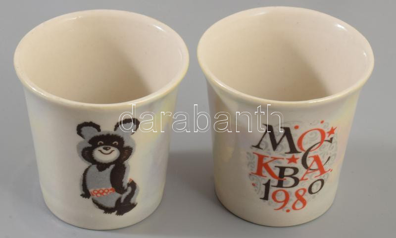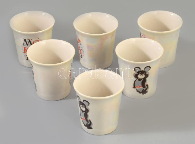 1980 6 db moszkvai olimpiai kis pohár, Matricás, jelzett, hibátlan 5,5 cm
