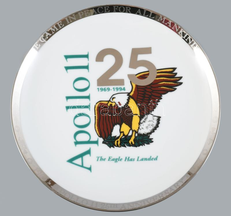 1994 Apollo 11 25 éves évfordulója dísztál, jelzett, hibátlan, d: 21 cm, dobozában.