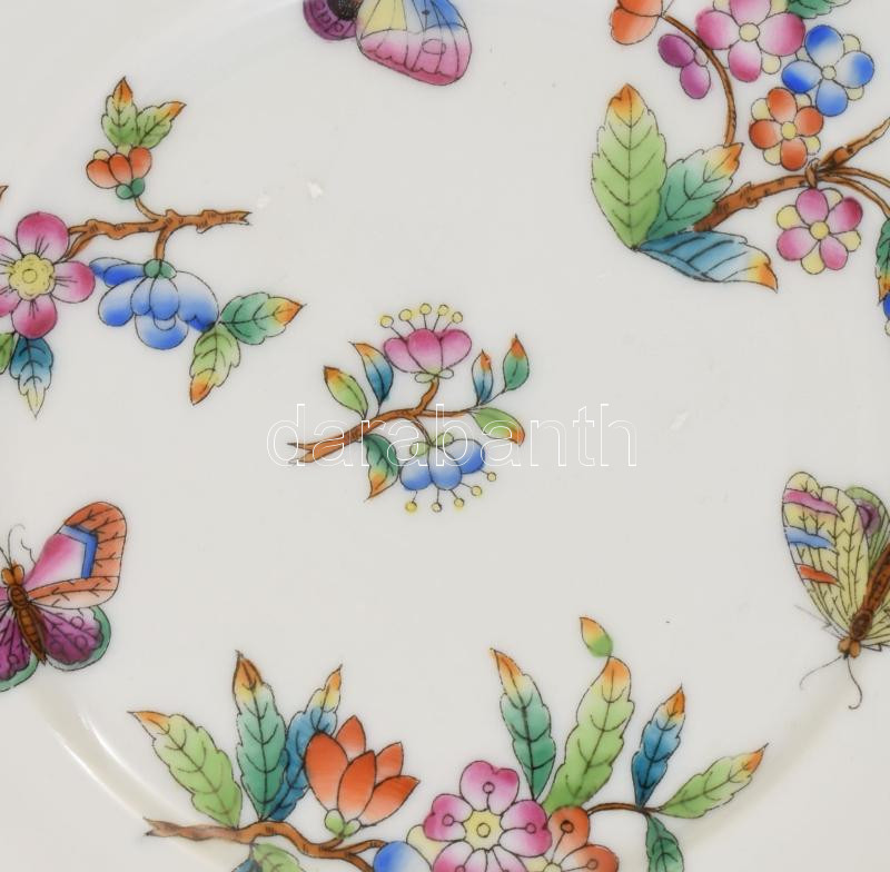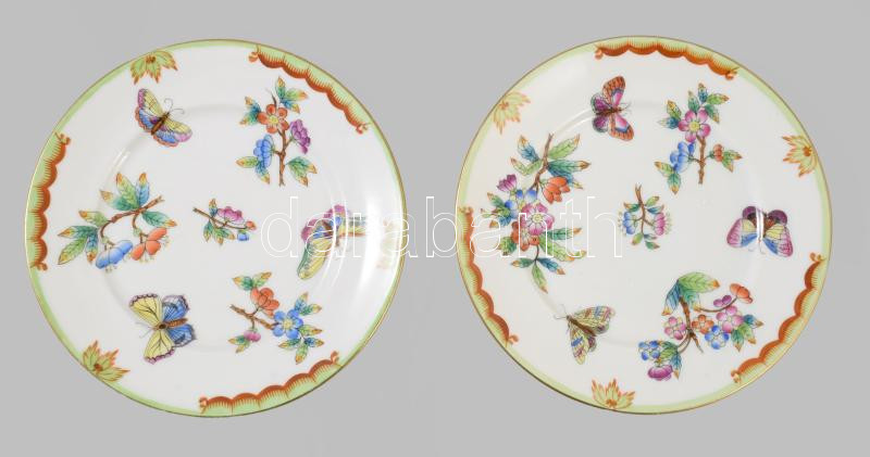 2 db Herendi Viktória mintás süteményes tányér. Kézzel festett, jelzett, egyiken mázrepedéssel d: 15,5 cm
