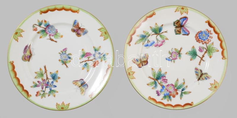 2 db Herendi Viktória mintás süteményes tányér. Kézzel festett, jelzett hibátlan d: 15,5 cm