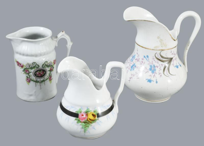 3 darab antik porcelán kiöntő, m: 16 cm alatt