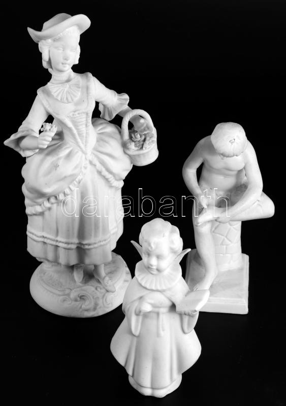 3 darab biszkvit porcelán figura, közte Schaubach kunst, egyik sérült, m: 18 cm alatt