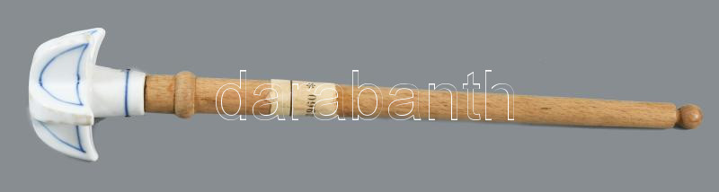 Antik porcelán végű citrusnyomó, kopással, h: 29 cm