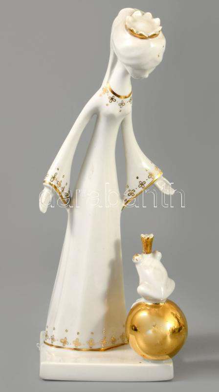 Aquincum királylány és békakirályfi. Terv.: Ősz Szabó Antónia. Kézzel festett, jelzett, hibátlan, m: 21 cm